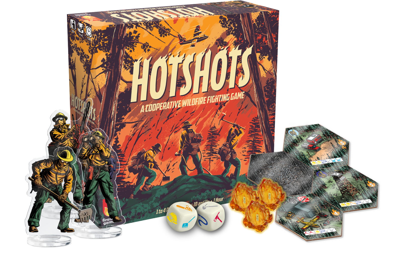 When a wildfire burns across the land, the first team sent in are the Hotshots. Hotshots is an award-winning, co-op, press-your-luck, strategy game where 1-4 wildfire fighters team up as Hotshots to battle against a raging forest fire.